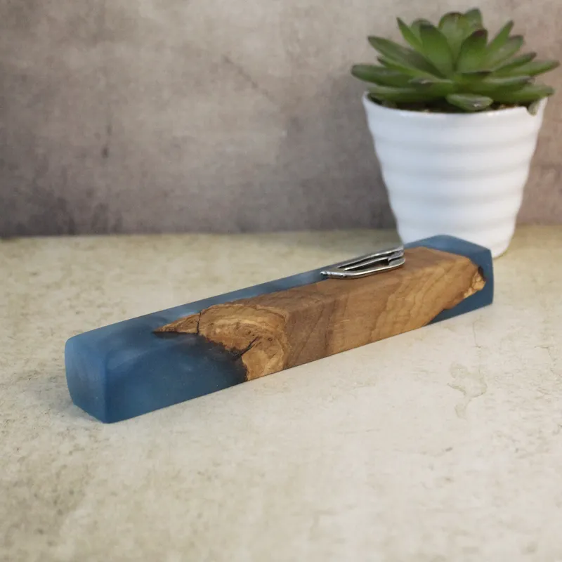 מזוזה מרהיבה מעץ זית ואפוקסי כחול, גלו את הקסם שבשילוב מסורת עתיקה עם עיצוב עכשווי בעזרת המזוזה הייחודית שלנו, המשלבת עץ זית ארץ-ישראלי אותנטי עם אפוקסי בגוון כחול מרהיב.