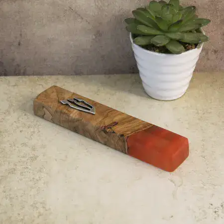 מזוזה מעץ זית ואפוקסי אדמדם - חיבור בין אש המסורת ויופי עכשווי