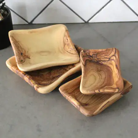סט 4 קערות מלבניות מעץ זית - אלגנטיות טבעית בשולחן שלכם