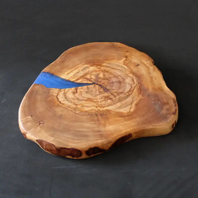- עשוי מעץ זית איכותי עם מילוי אפוקסי בגוון כחול עמוק