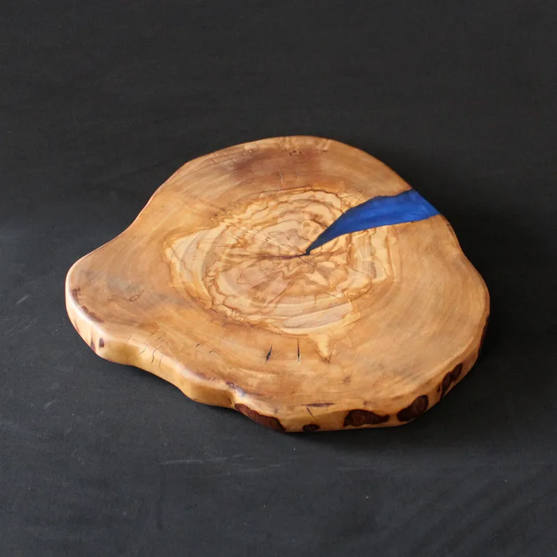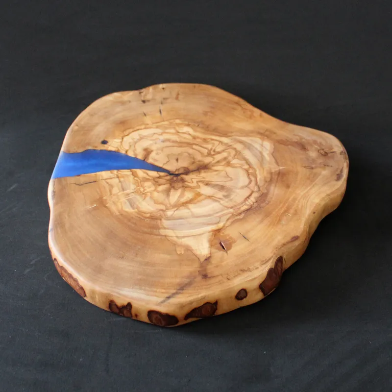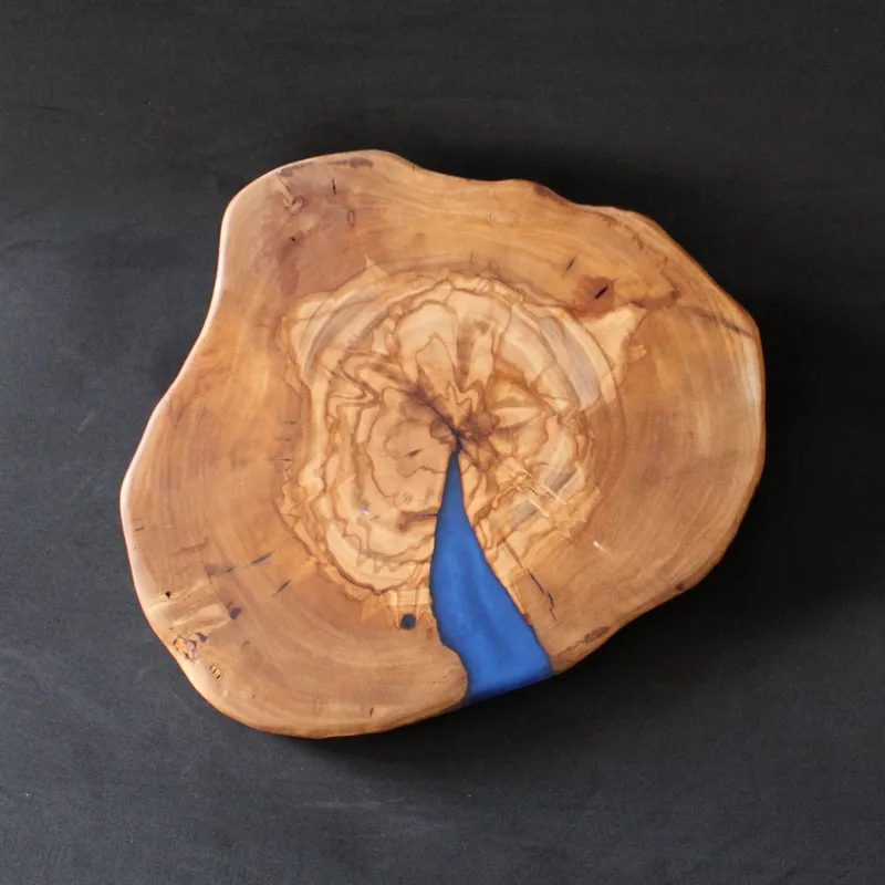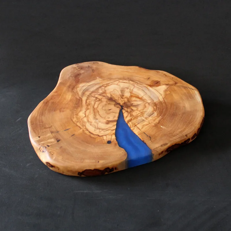 לוח הגשה 'סדרת הפיצול' מעץ זית ארץ-ישראלי עם אפוקסי כחול