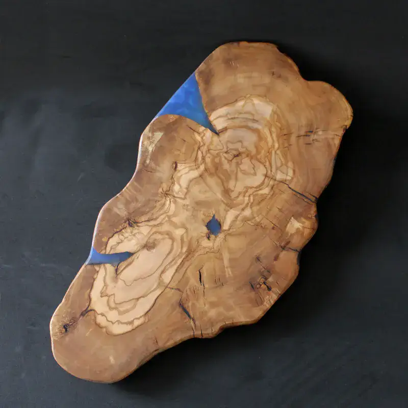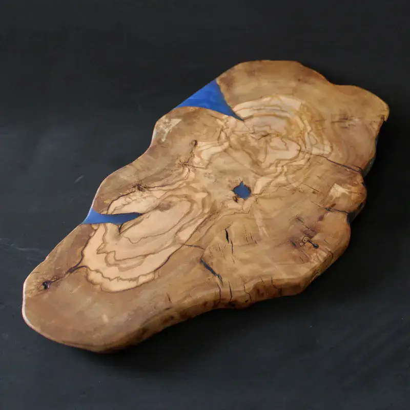 - עשוי מעץ זית איכותי עם מילוי אפוקסי כחול בחריצים הטבעיים