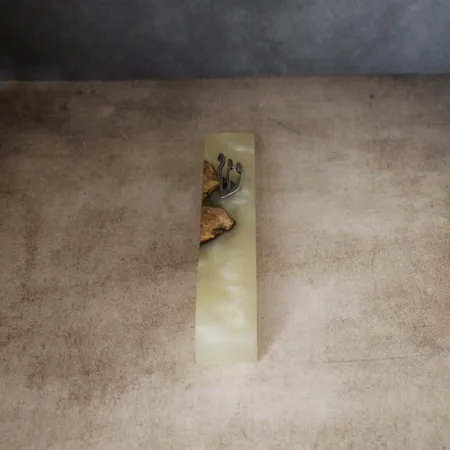 חוו את הקסם של מזוזה המשלבת את עומק המסורת עם זוהר עכשווי. עשויה מעץ זית ארץ-ישראלי עתיק, עם זרימה מרהיבה של אפוקסי בגוון לבן פנינה מנצנץ.