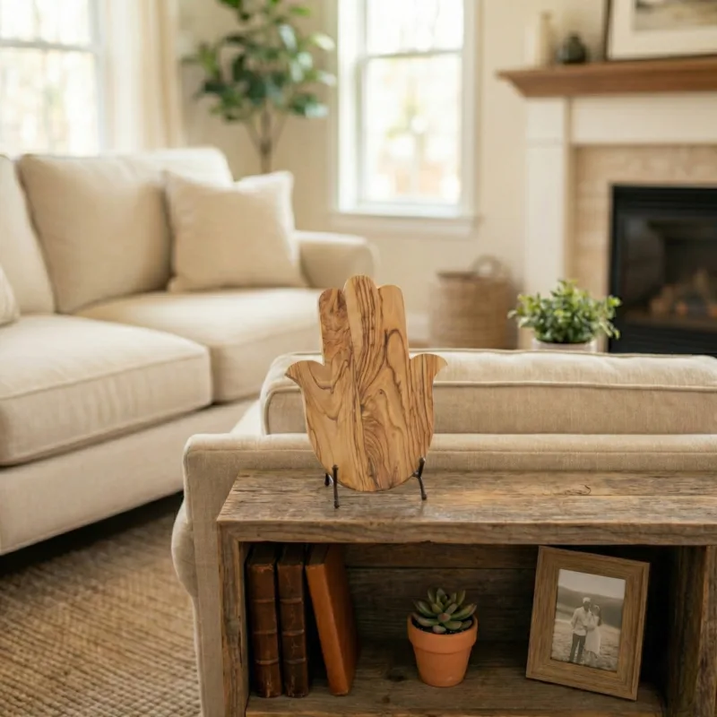 חמסה מעץ זית בעבודת יד – טבעית, נקייה ומלאת אופי לעיצוב הבית.