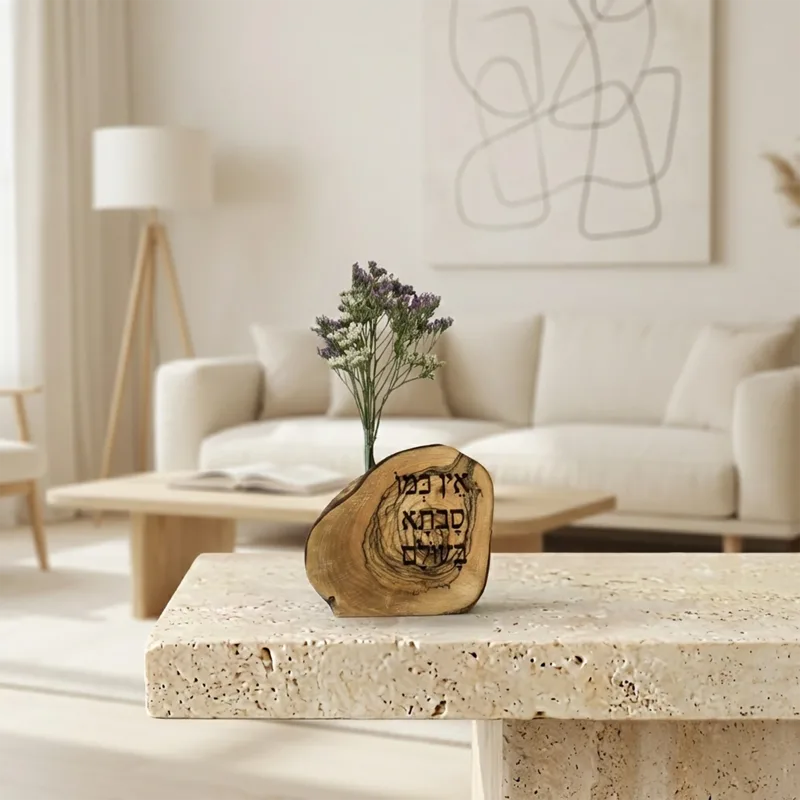 וייזבלוק עץ זית בחריטה אישית: "אין כמו סבתא בעולם" – מתנה מרגשת בעבודת יד עם פרחים טבעיים