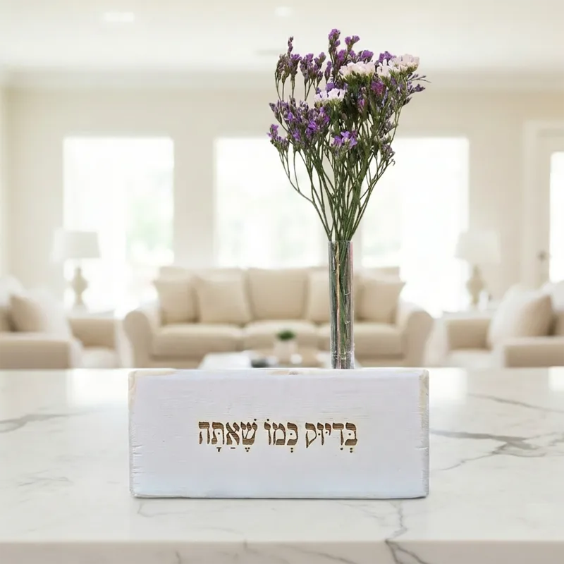 וייזבלוק פרחוני – בלוק עץ אורן בעבודת יד עם חריטה מעצימה: "בדיוק כמו שאתה" | מתנה מרגשת של קבלה והערכה