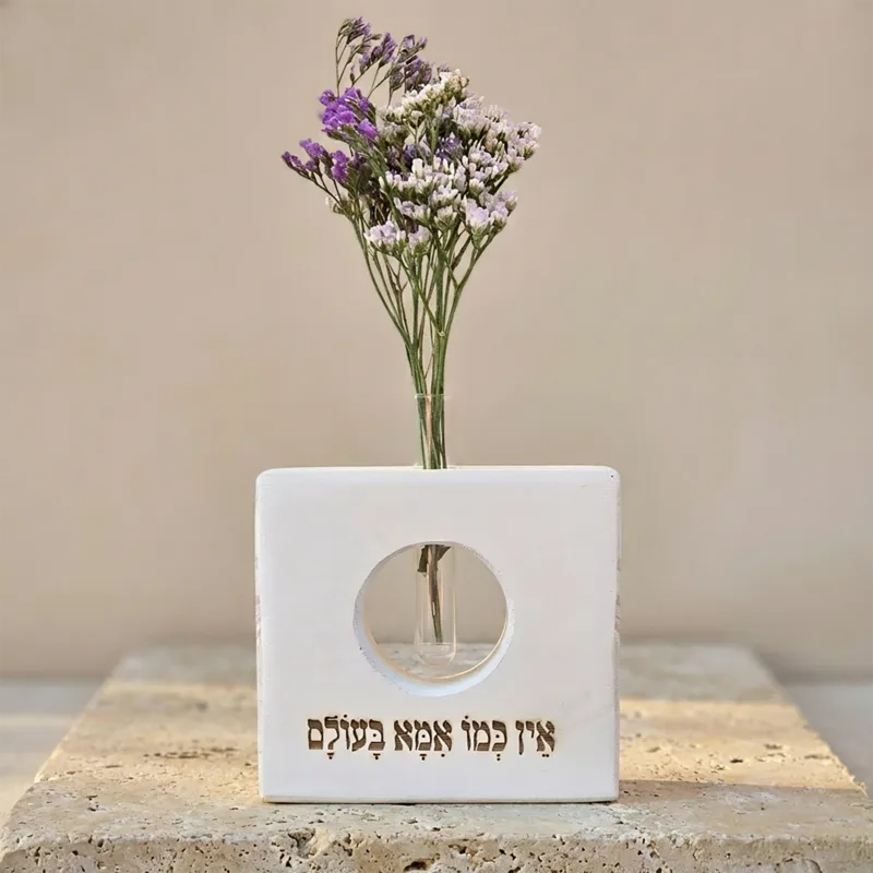 וייזבלוק Square פרחוני – בלוק עץ אורן מרובע עם חלון מעוצב וחריטה: "אין כמו אמא בעולם" | מתנה מרגשת ויוקרתית לאמא