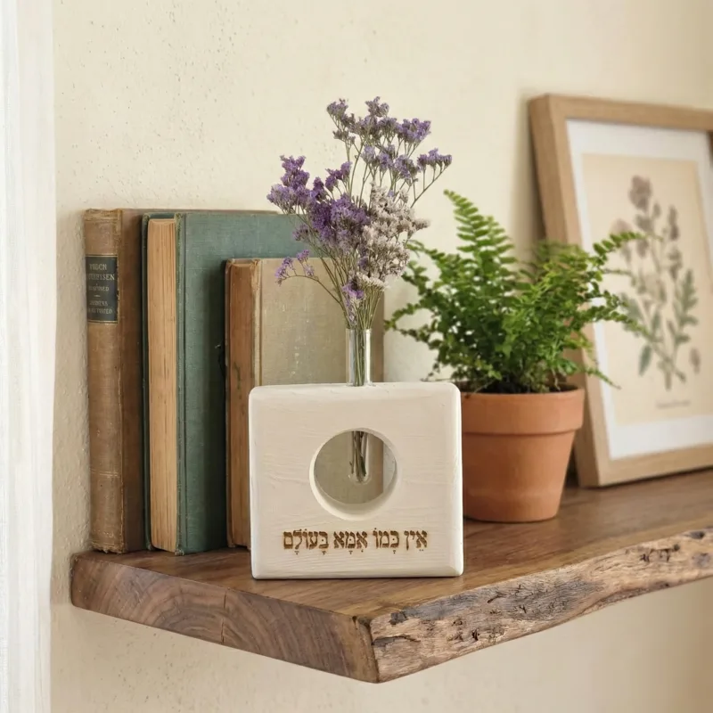 החריטה האישית "אין כמו אמא בעולם" הופכת את הבלוק הזה למתנה אידיאלית ליום המשפחה, יום הולדת, חגים או פשוט כאות תודה על הלב הענק והנתינה האינסופית שלה. זהו פריט שמוסיף נגיעה של טבע ורוח חיובית לכל שידת לילה, שולחן עבודה או מדף, ומהווה תזכורת יומיומית לקשר המיוחד שביניכם.