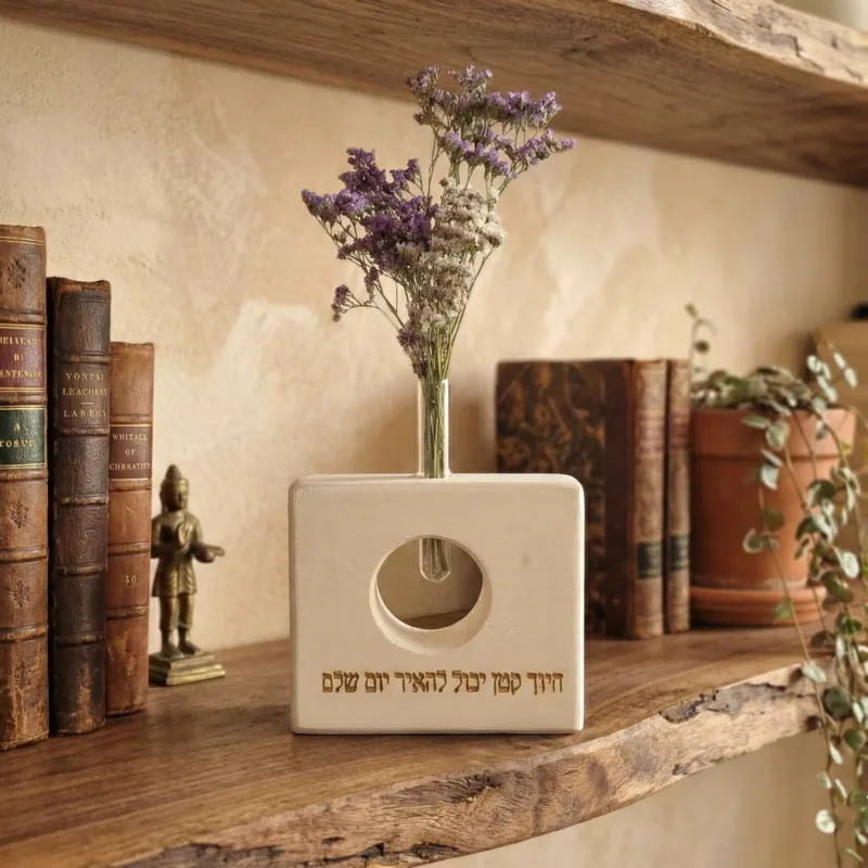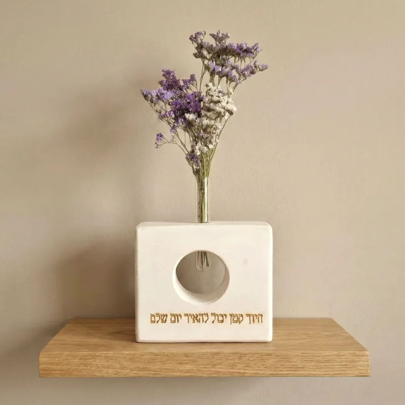 הייחודיות של דגם ה-Square היא החלון העגול המרשים שנחצב בתוך העץ, המאפשר למבט לעבור דרכו ולחשוף מבחנה המכילה פרחי עדעד (בגווני סגול ולבן) ו או גיפסנית לבנה. הקסם של הפרחים הללו טמון בעמידותם המופלאה – הם נשמרים במראם הטבעי והחיוני למשך חודשים ארוכים מאוד ללא צורך במים, השקיה או תחזוקה, מה שהופך את הוייזבלוק לפריט דקורטיבי שתמיד נראה במיטבו.