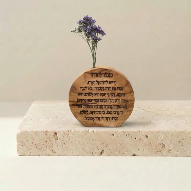 מתנה עם משמעות עמוקה: מחפשים דרך מקורית ומרשימה להגיד תודה? "מזמור לתודה" על פרוסת עץ זית עגולה היא המתנה האידיאלית לחנוכת בית, יום הולדת, חג או כאות הוקרה אישי. פריט שמחבר בין רוח לחומר ונשאר כמזכרת יפהפייה ושורשית לשנים קדימה.